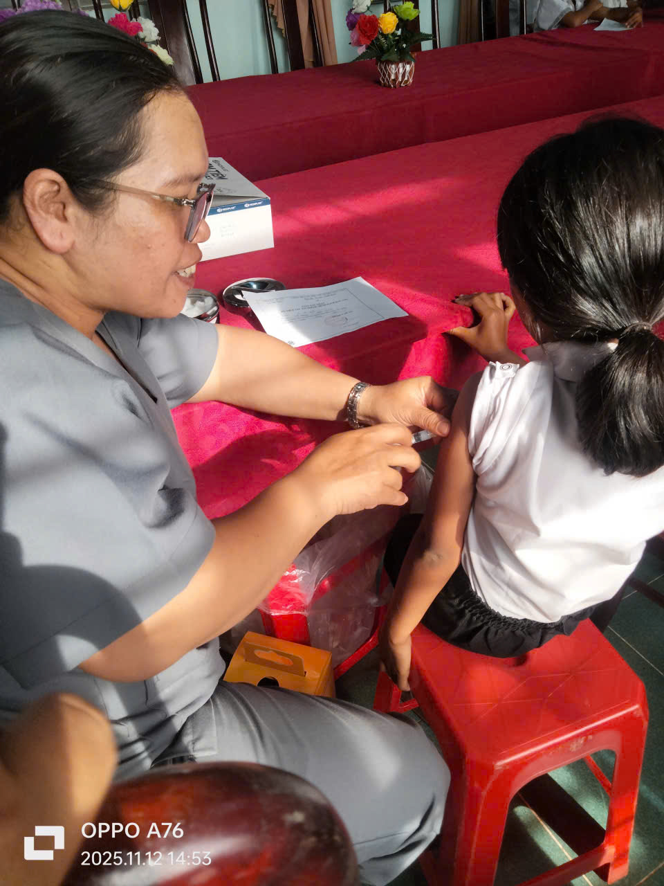 TRẠM Y TẾ XÃ THỰC HIỆN TIÊM BÙ LIỀU CHO HỌC SINH LỚP 2 TẠI TRƯỜNG NĂM HỌC 2025-2026